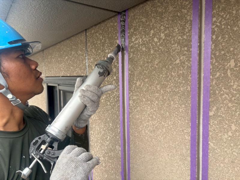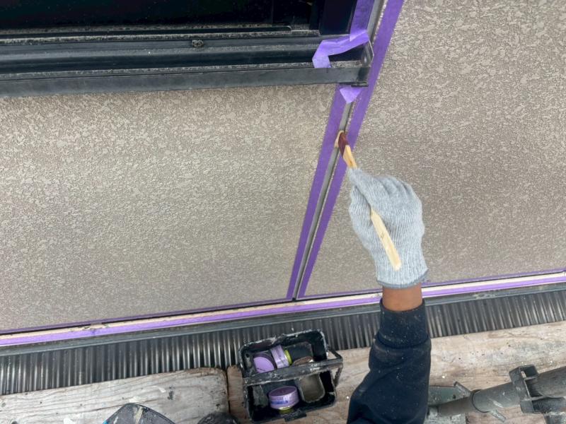 既存シーリングを撤去後、プライマーを塗布して新しいシーリング材を打ちます。