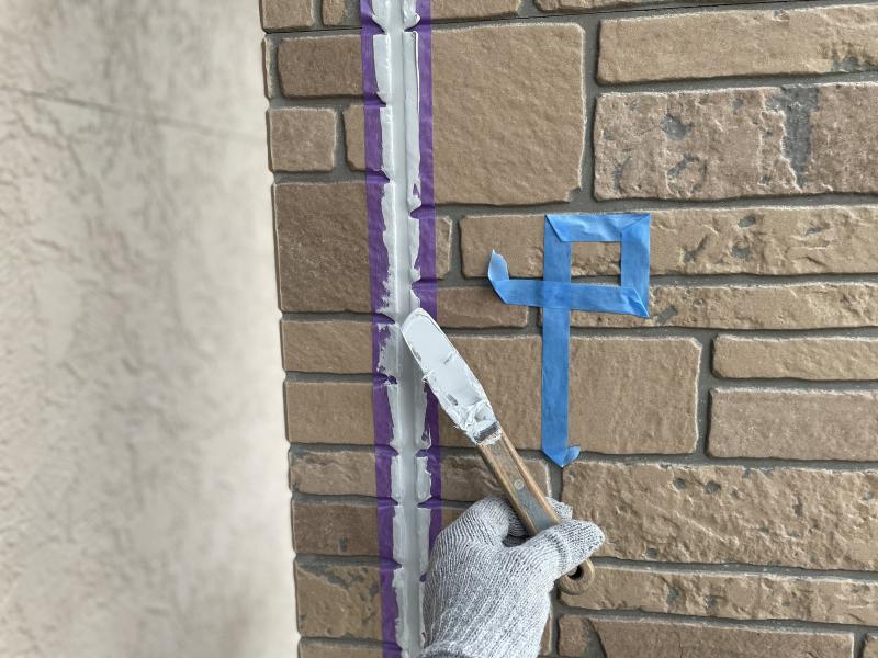 既存シーリングを撤去後、プライマーを塗布して新しいシーリング材を打ちます。