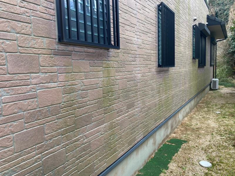 コケ・カビによる汚れが見られます。こうした汚れが残っていると新しく上に塗装をしても塗料を養分に繁殖、新しい塗料を劣化させてしまいます。