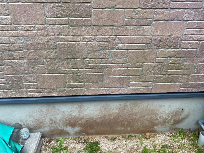 基礎は、雨水や土の跳ね返りによる茶色い付着汚れが見られます。