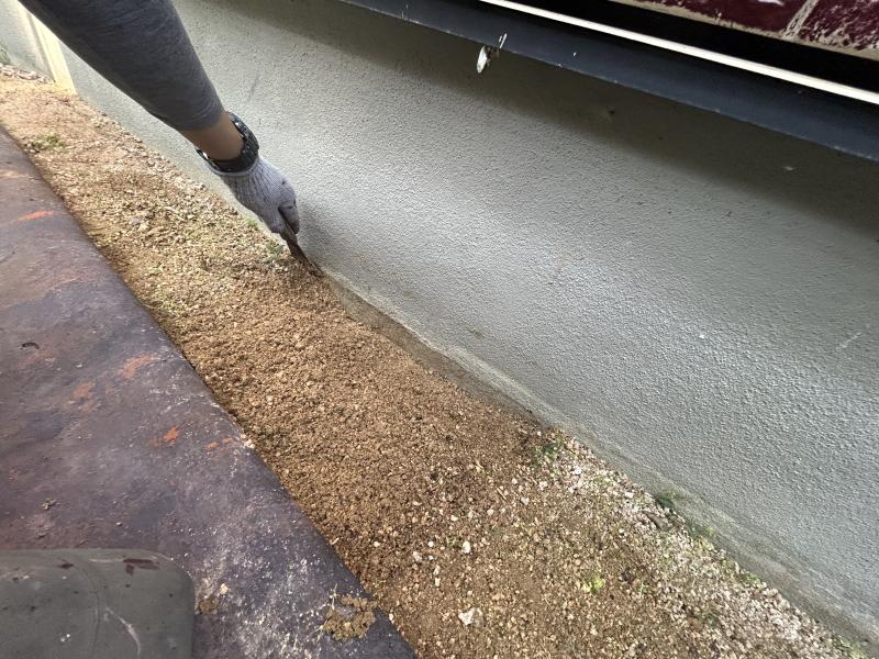 基礎部の下側は土で隠れているので、そこも土をのけて塗っていきます。